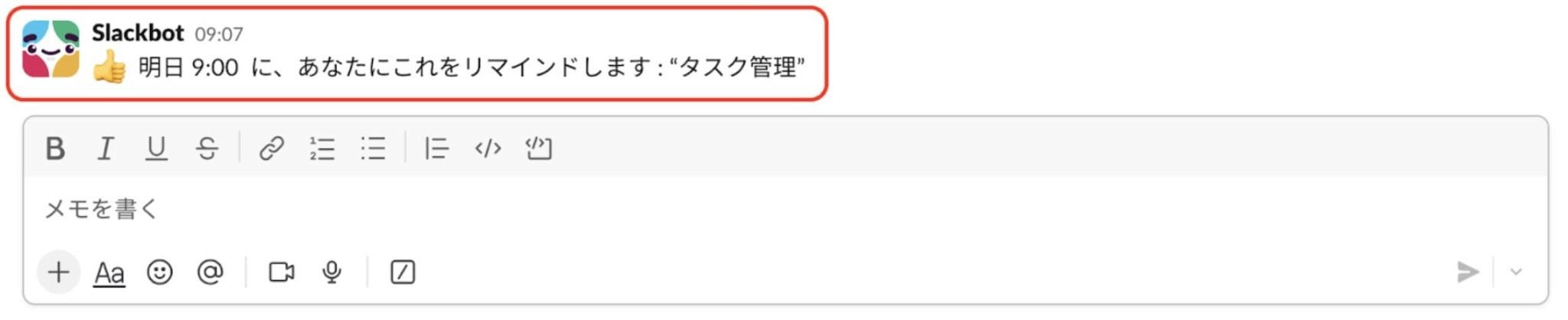 Slackの標準機能の中で、もっともタスク管理に活用できる機能といえるでしょう。