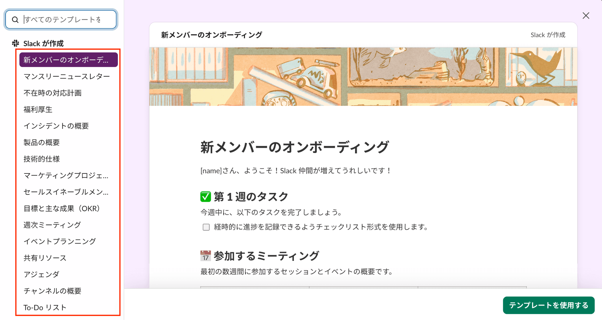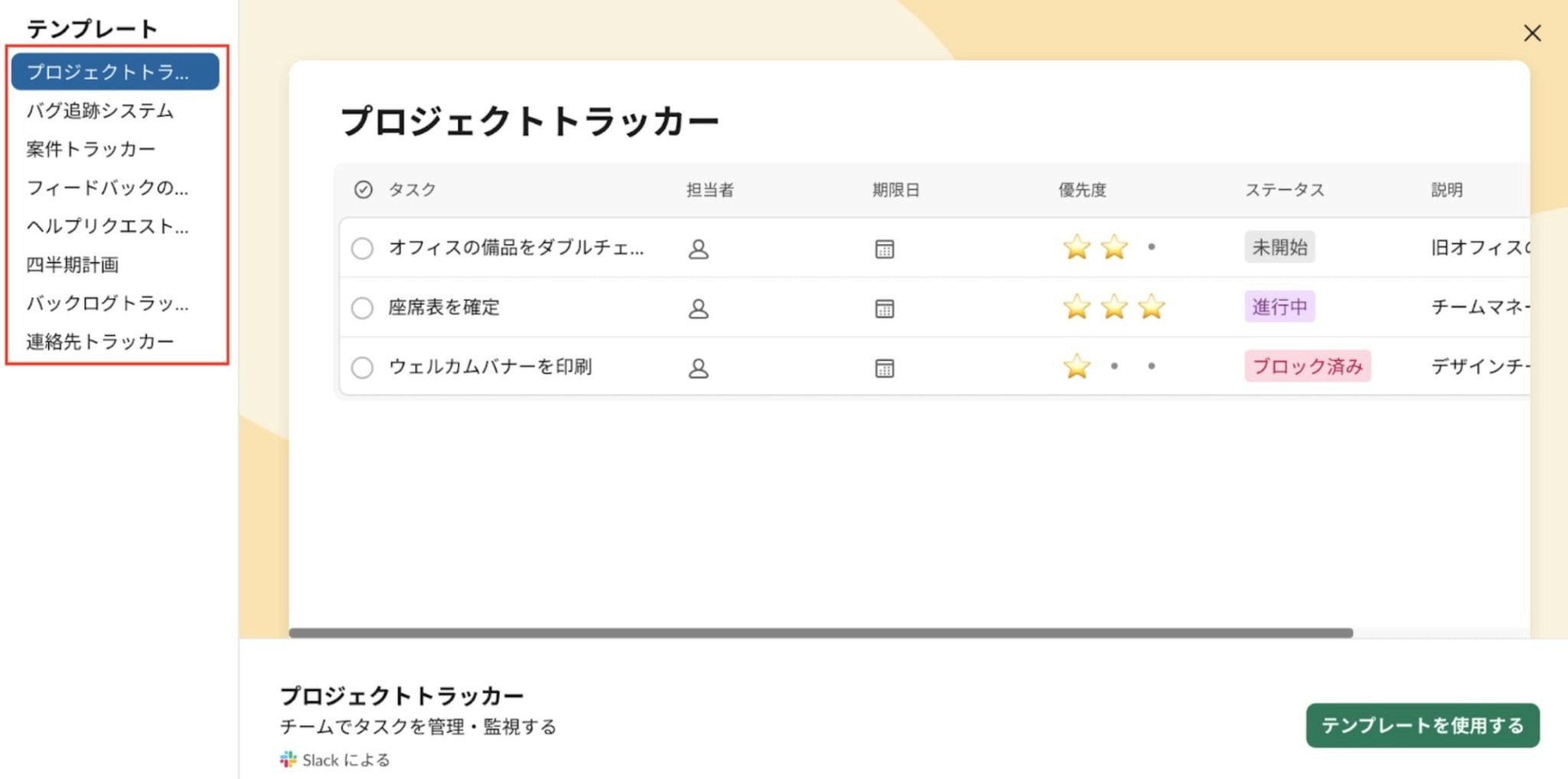 ②テンプレートから使いたいリストを選びましょう。
