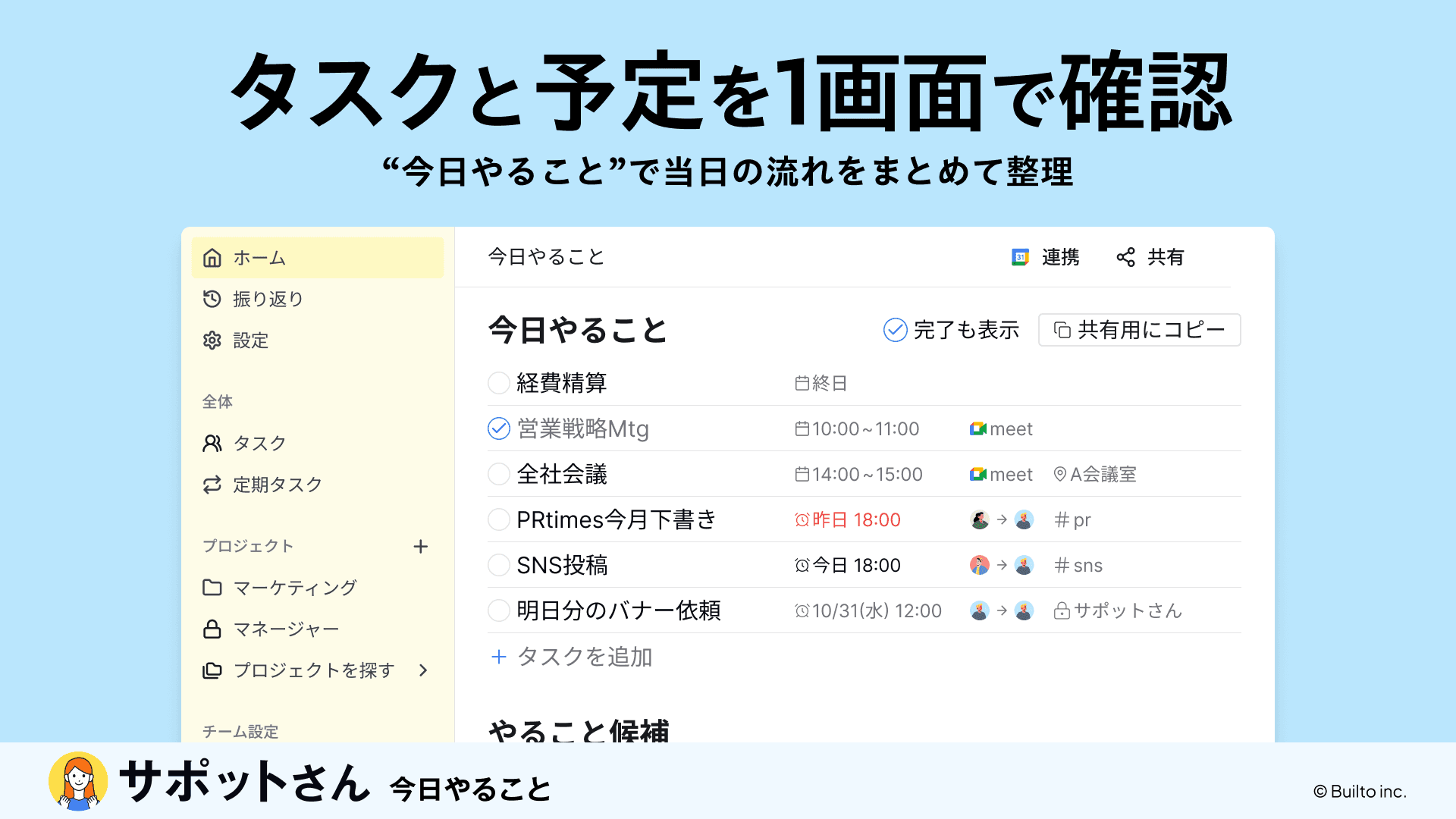 全自動タスク管理アプリ「サポットさん」でスケジュール管理を自動化