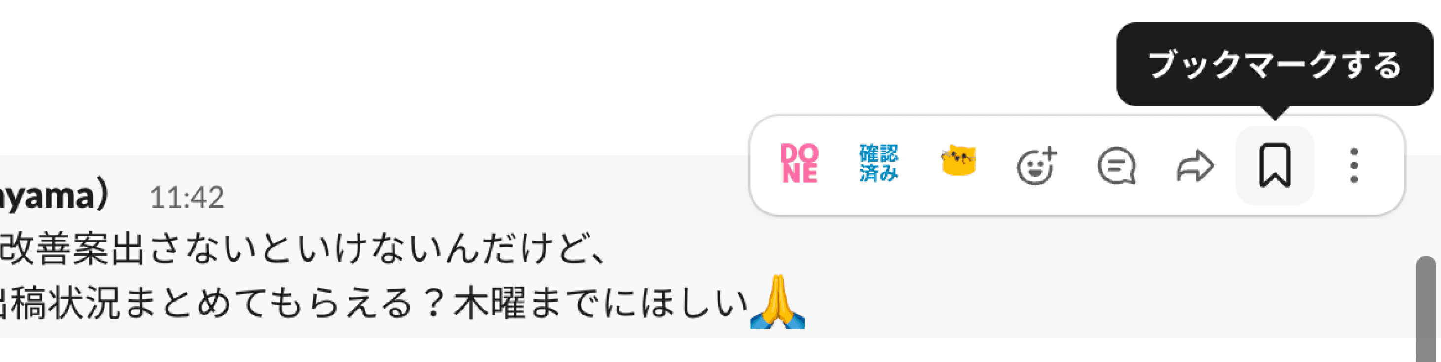 ブックマーク機能は、対応が必要なメッセージを後から見返すために保存する機能なので、見落としを防ぐ最も手軽な方法です。