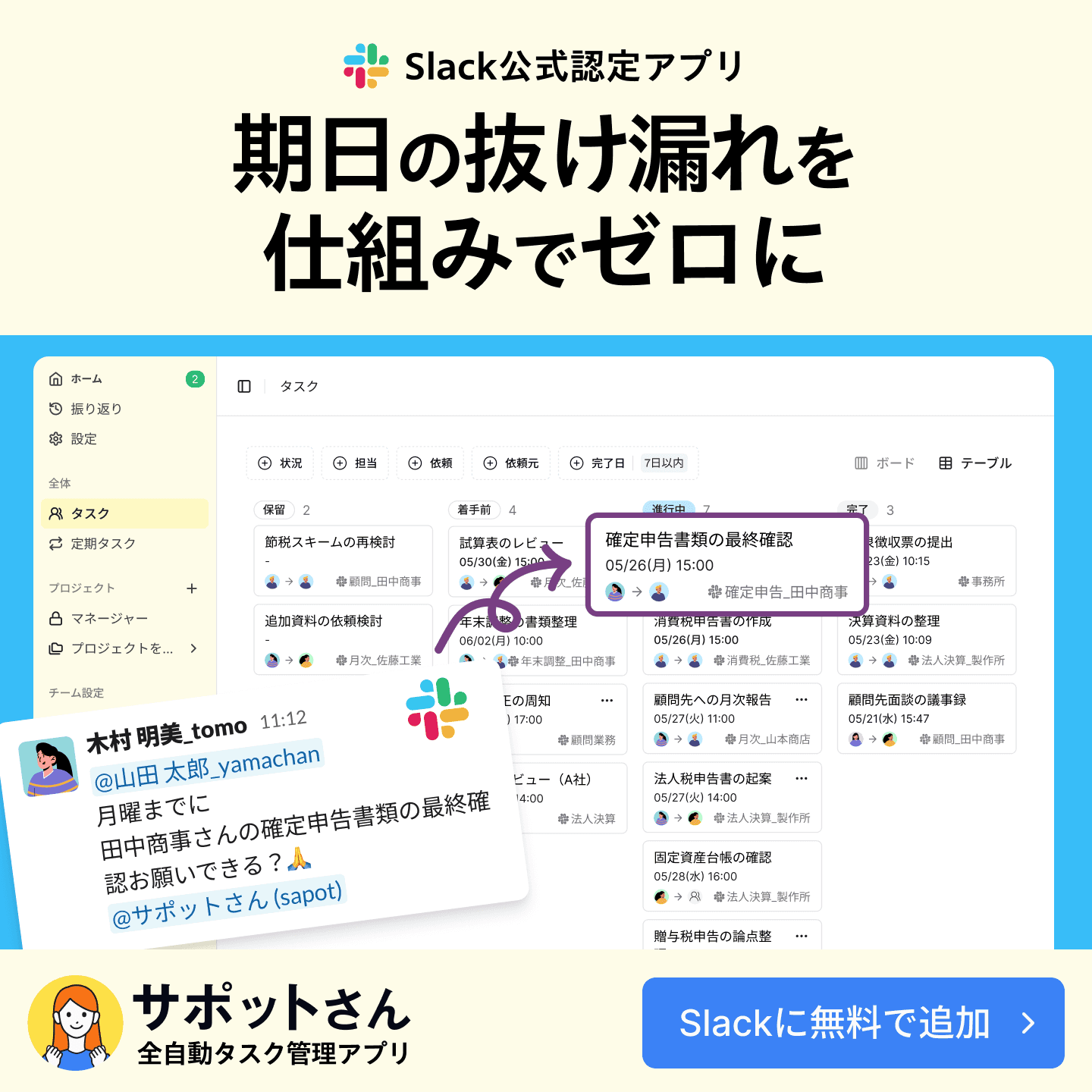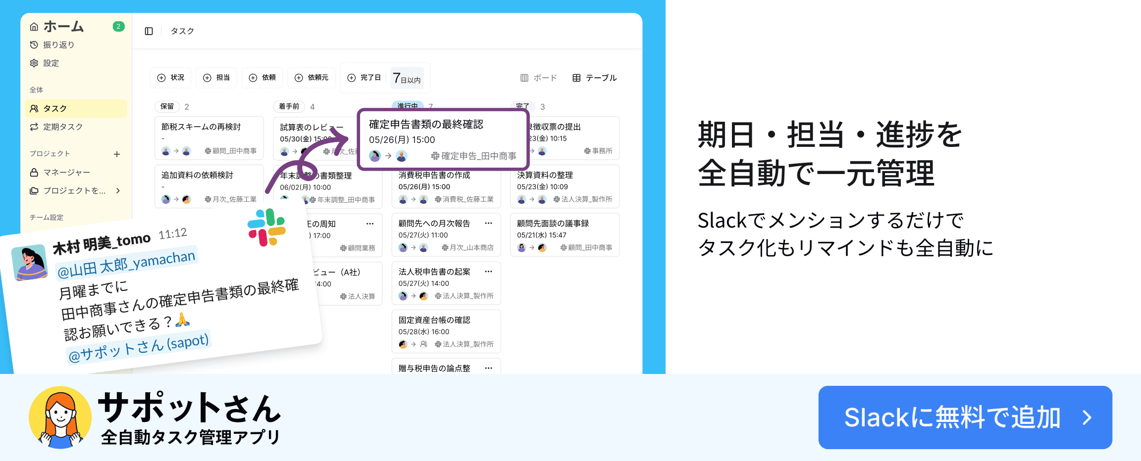 税理士の期日管理を変える全自動タスク管理アプリ「サポットさん」