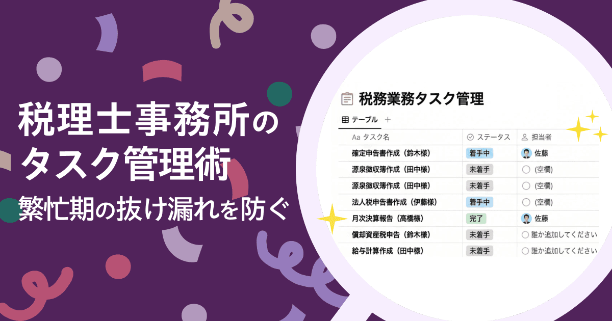 確定申告・年末調整・法人決算などが重なる税理士事務所では、繁忙期のたびにタスク管理のミスが表面化します。