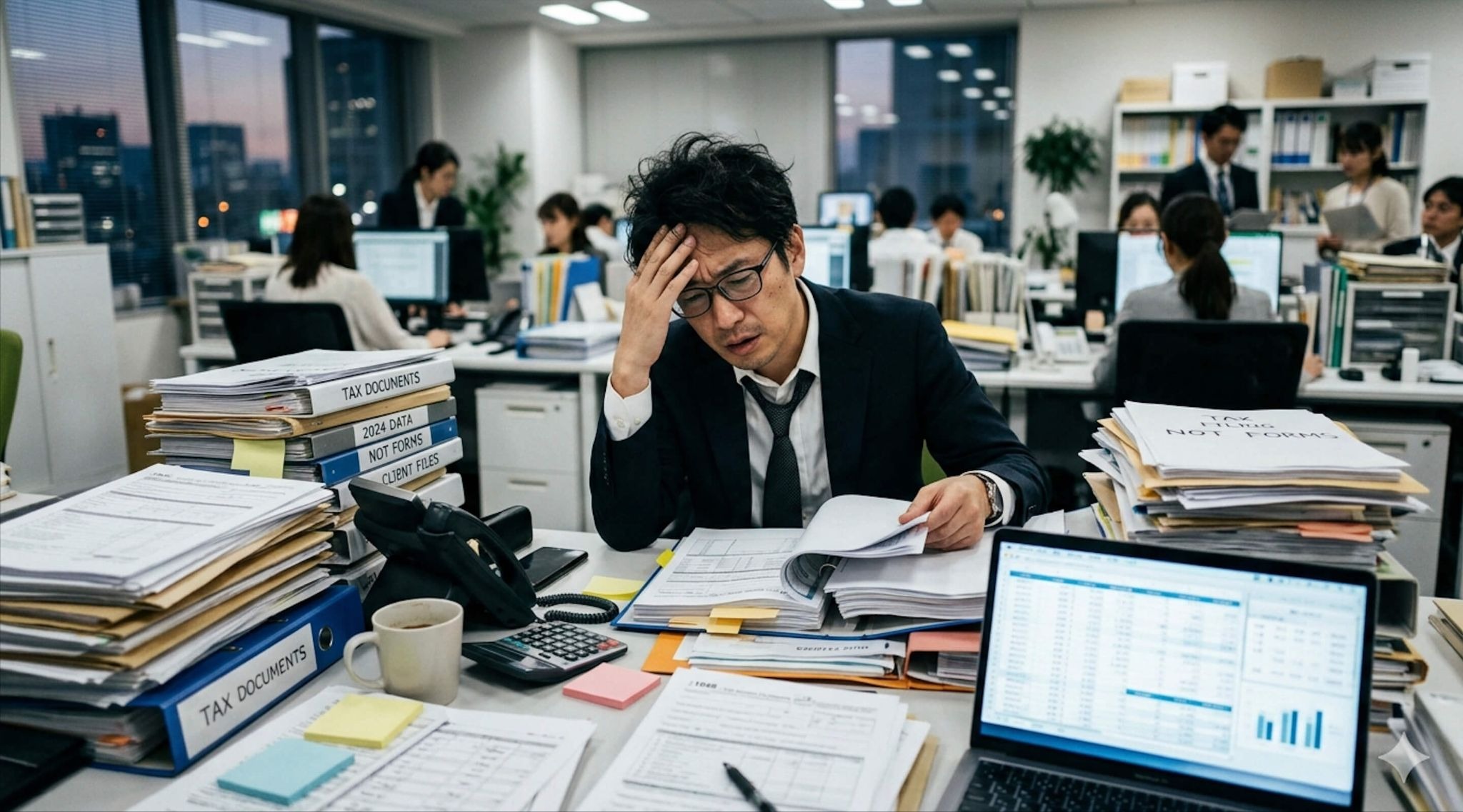 確定申告・年末調整・法人決算などの繁忙期には、通常業務に加えて大量の申告業務が増えるからです。